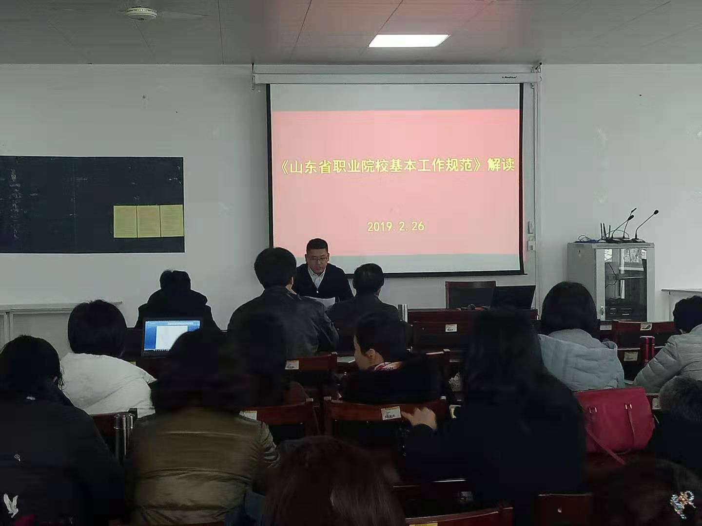 集体学习文件政策环节中,在机电工程学院耿效华和解永辉带领下,各科室负责人本着高度的责任感、使命感,认认真真、原原本本的以全文领读、领学的方式同全体教师学习了相关学习材料。