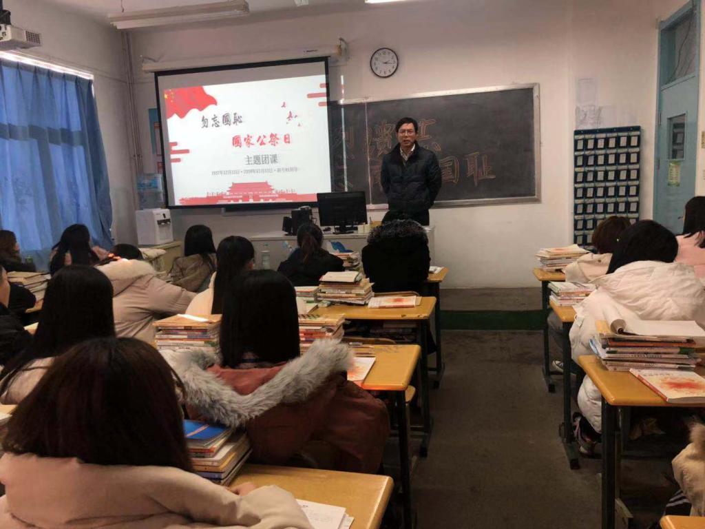 12月13日,各班级辅导员(班主任)组织开展“缅怀先烈遗志,勿忘南京国耻”主题团课活动。辅导员(班主任)首先利用视频、PPT等多种形式向同学们讲述了国家公祭日的由来、历程以及历史意义,重温了南京大屠杀的历史,强调了国家公祭日的设立不是为了绵延仇恨,而是为了正视这段历史,勿忘国耻,珍爱和平,唤起了同学们“勿忘国耻,不忘初心”的责任感和使命感。随后,学生代表积极发言,表达了要坚定不移走和平发展道路的崇高愿望,表示要牢记历史、不忘过去,珍爱和平、开创未来的坚定立场,增强了同学们的爱国主义信念。