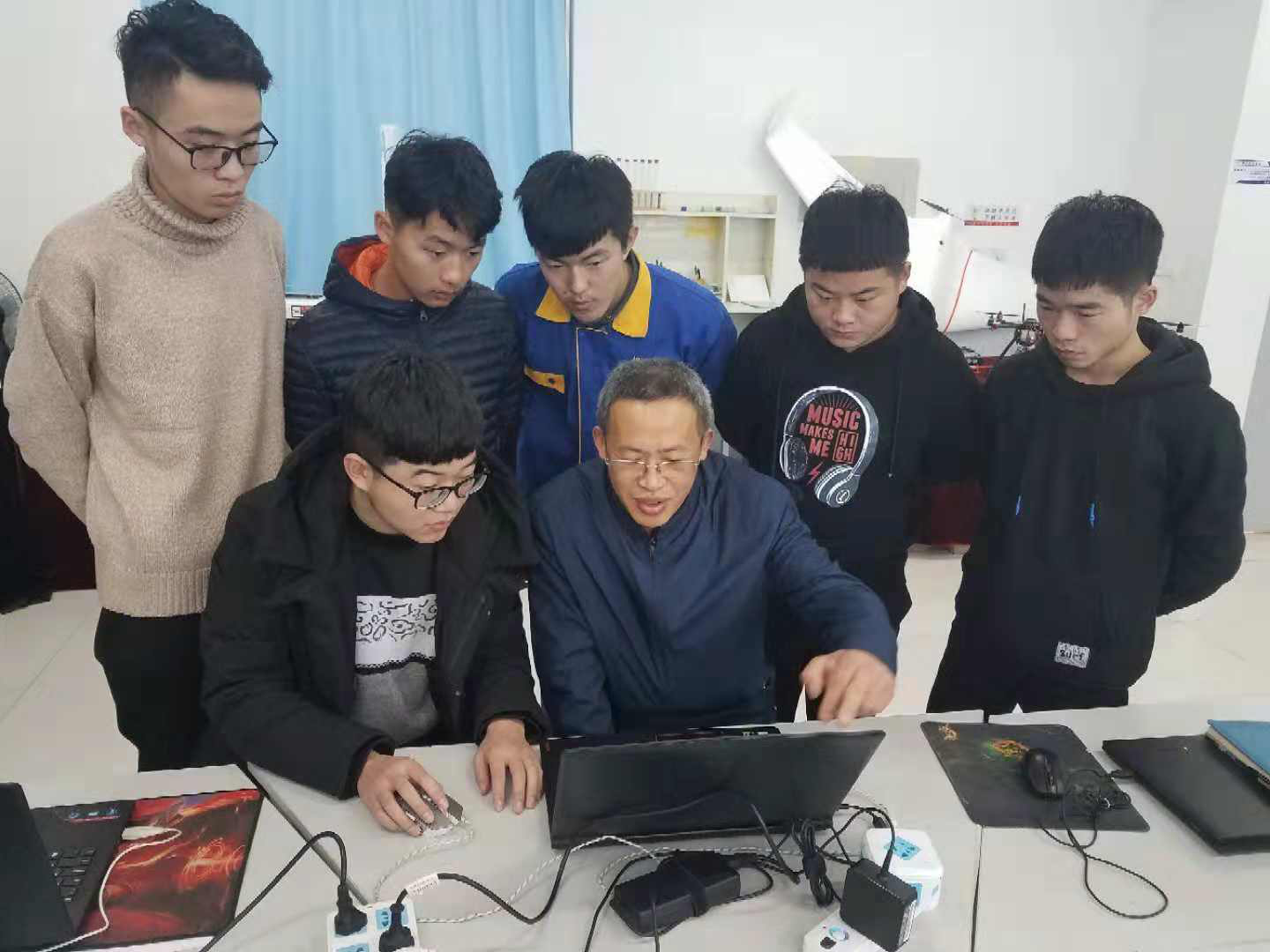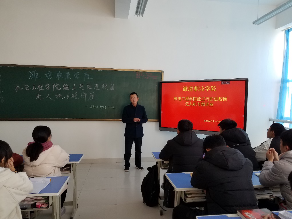 锐翔航空科技有限公司袁光刚总经理为必赢2018级机电一体化技术专业(无人机方向)60名同学进行了一场别开生面的无人机应用技术讲座。袁光刚用视频和实物展示的方式从无人机种类、应用场景、市场潜力、人才需求、技能掌握等方面对无人机知识进行了生动的讲解,对于正处于通识课程学习阶段的大一新生来说,袁总的讲座让在场的学生对无人机专业学习产生了浓厚的兴趣,对行业、企业、人才需求现状也有了更深的了解,对于今后的专业学习及职业生涯规划大有裨益。