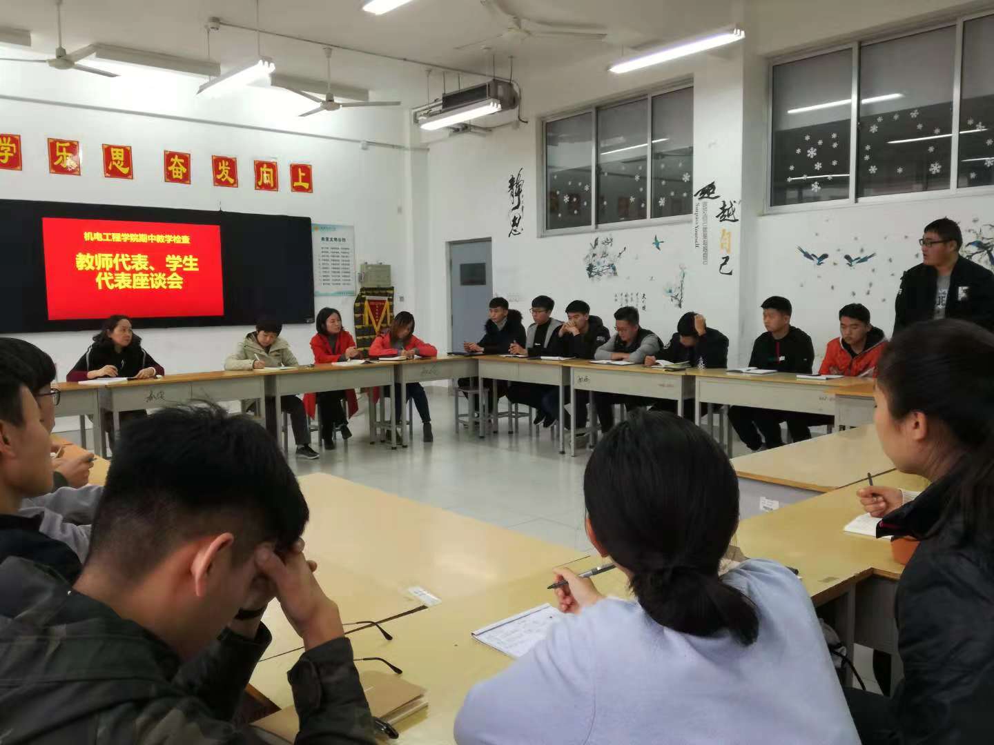 座谈会上,来自2017级、2018级各班级的学生代表踊跃发言,围绕教学管理、课堂教学、实践课程安排、实训室配套设施、校园生活、班风学风等方面进行发表了自己意见和建议。座谈会中学生们提出的各种问题和教学需求,机电工程学院有关部门将结合目前情况及时研究解决,同时会将同学们提出的有关意见反馈给相关任课教师,以进一步促进学院教学服务精细化,提升教学管理工作质量。