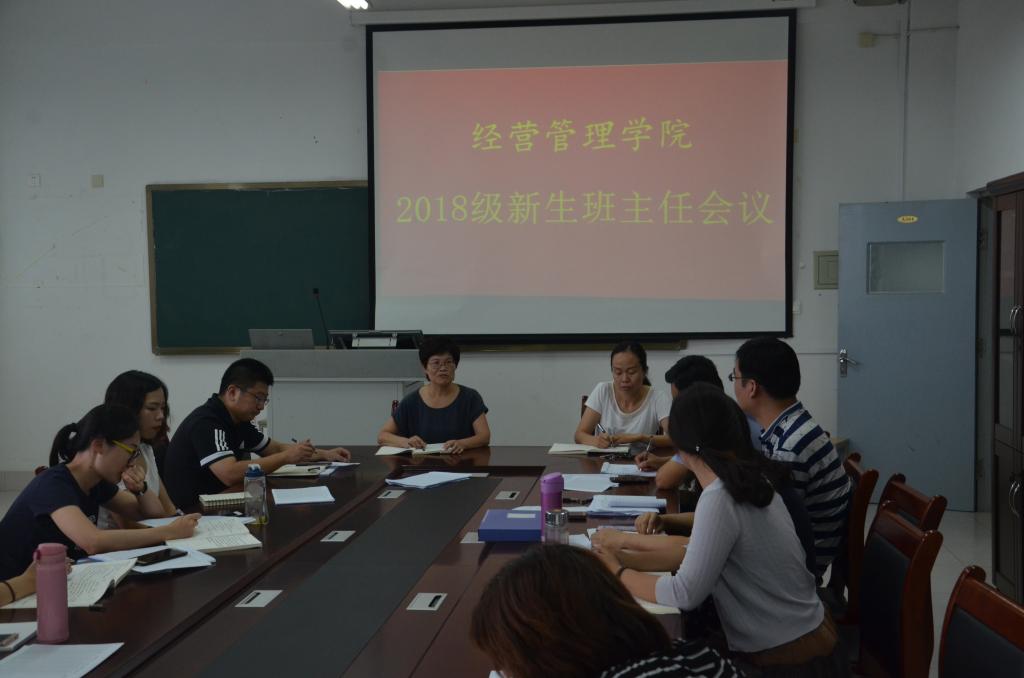 8月30日下午,经营管理学院在惠泽1号楼304教室召开2018级新生班主任迎新工作筹备会,经营管理学院主要负责同志及全体2018级全体新生班主任参加会议。