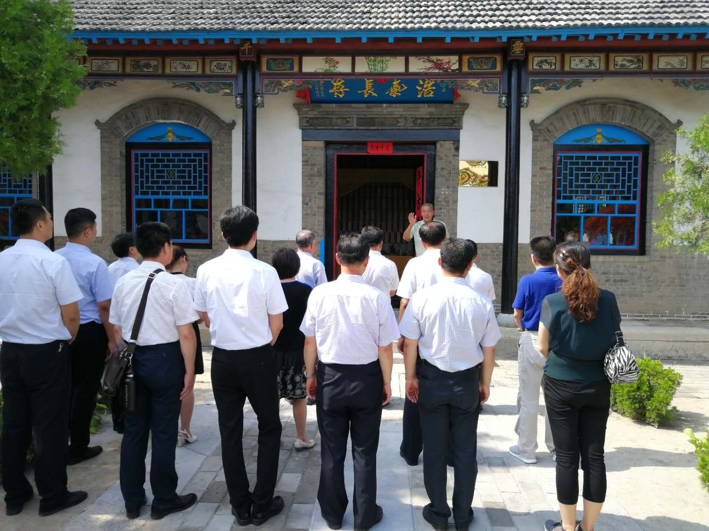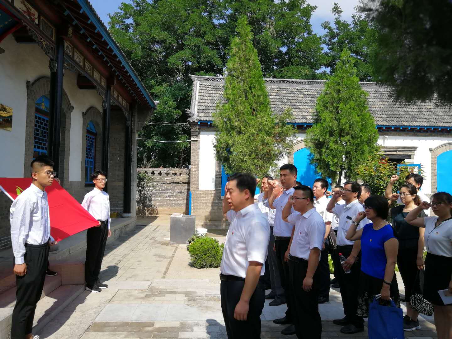 全体同志首先参观了昌邑县抗日殉国烈士祠。退伍老兵、烈士祠守护人、昌邑市优秀共产党员魏铁良老人介绍了烈士祠建立的背景,讲述了抗日战争时期昌潍大地上抗日军民英勇顽强斗争、革命先烈为民族独立解放英勇牺牲的事迹,勉励大家弘扬先烈英雄的爱国精神、大无畏的奉献精神,在自己的岗位上努力工作,为实现伟大的中国梦不懈努力奋斗。全体同志在烈士祠正厅前三鞠躬,向革命先烈致以崇高的敬意。在支部书记谭明同志带领下,同志们面对党旗庄严宣誓,重温入党誓词。随后,全体同志参观了龙池红色文化展览中心——全武收藏博物馆。全面地了解了龙池历史文化、时代变革和龙池人民奋发向上的精神风貌。同志们深切感受到在党的领导下,社会建设、人民生活发生的翻天覆地的变化;坚信只要坚持中国共产党的领导,一定能实现中华民族的伟大复兴;要实现中华民族的伟大复兴,需要全体人民的共同努力和奋斗。