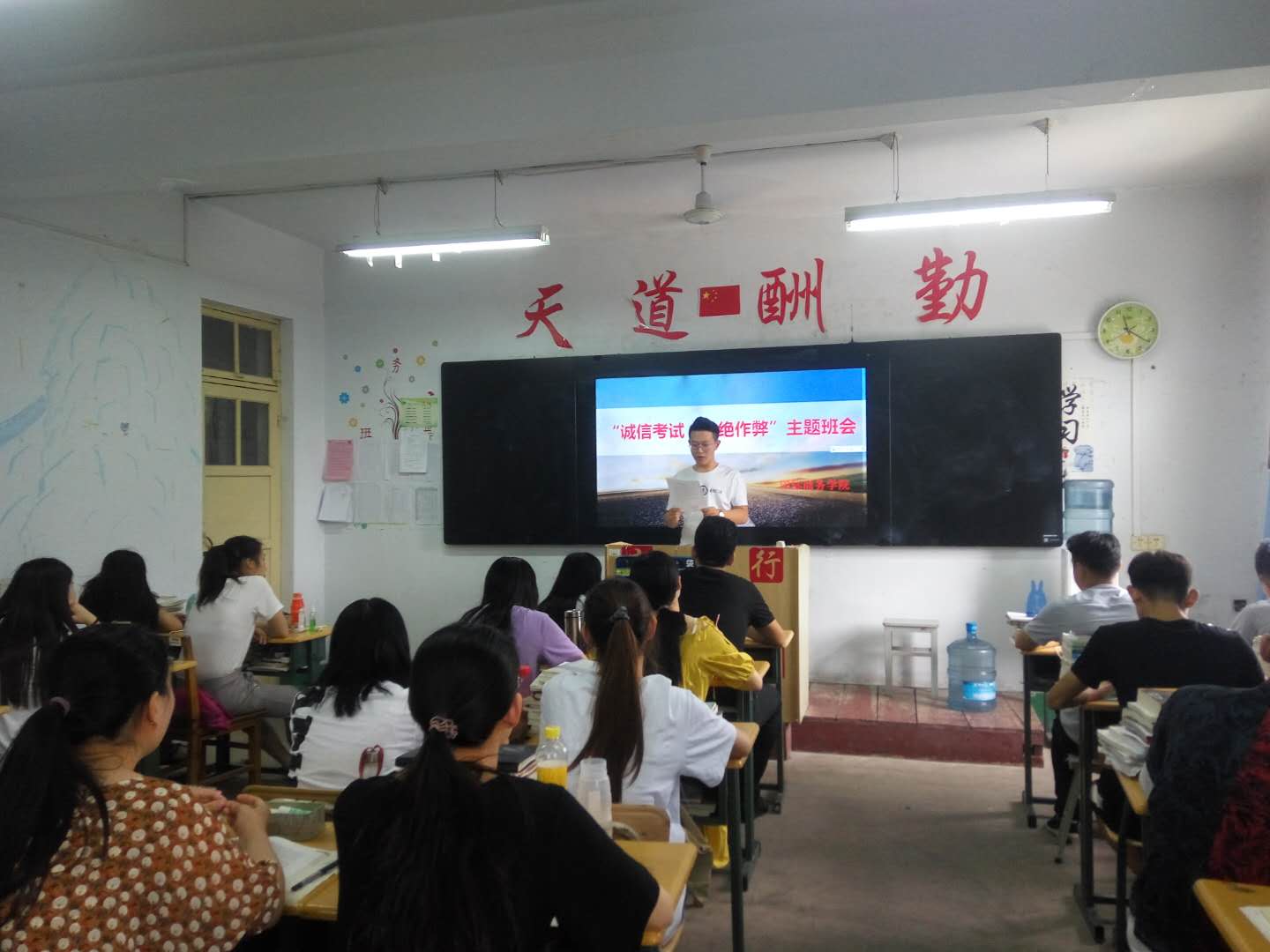 6月21日,通过召开“诚信考试·杜绝作弊”专题班主任会议,传达学习关于“加强诚信教育,严肃考风考纪”的精神,要求各班切实召开主题班会,加大对诚信考试教育的宣传力度。