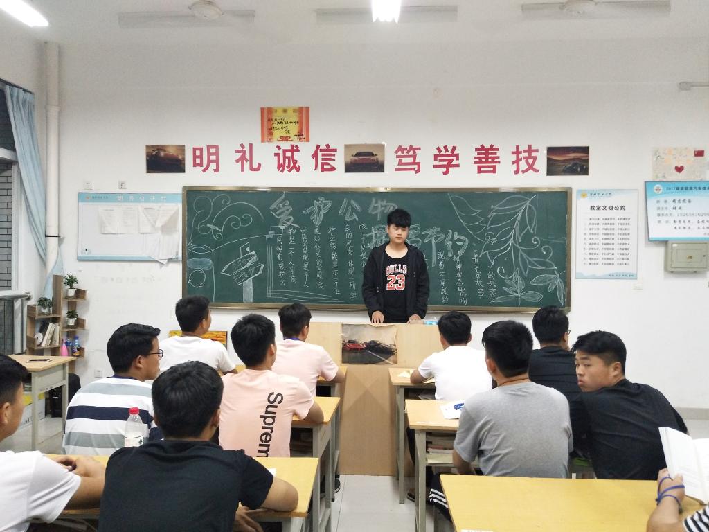 为促进学生爱护公物,培育学生健康心灵,形成良好校园风气,创建节约型校园。汽车工程学院于5月30日晚自习在惠泽2号楼B区开展了“爱护公物,提倡节约”主题教育。