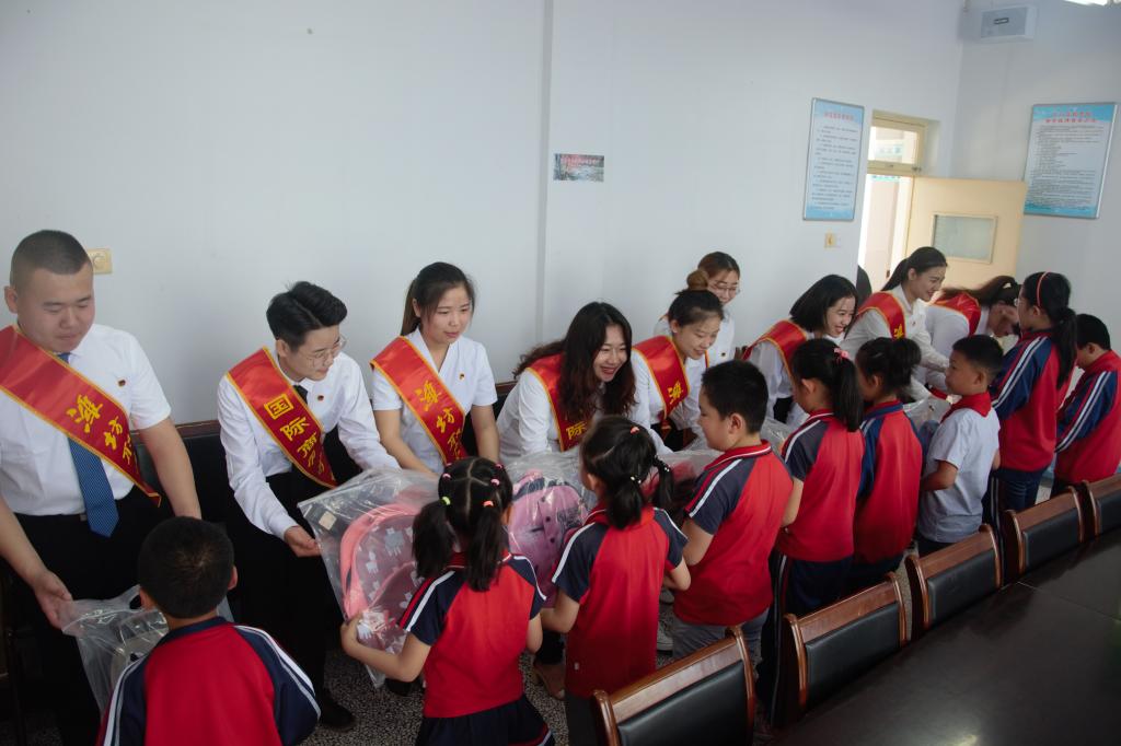 5月28日一早,国际商务学院分管学生负责人、团总支书记、潍爱青年志愿者协会指导老师和10名捐款学生代表和4名志愿者带着捐赠物资前往早春园小学。在早春园小学的升旗仪式结束后,必赢学生代表和志愿者们一对一地将爱心捐赠物资送到贫困儿童手中,这些贫困儿童接过书包、笔记本后连声道谢,脸上写满了感恩,必赢学生代表和志愿者也深深体会到了此次活动的意义。