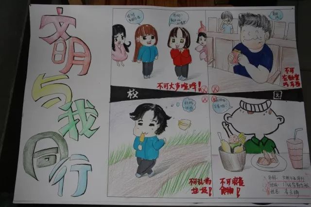 此次漫画比赛给同学们提供了一个观察生活的机会,让文明礼仪成为校园生活中不可或缺的一部分,更通过漫画这种喜闻悦见的形式,让学生更加深入的了解文明礼仪,促进校园文明发展。(李献媛供稿)