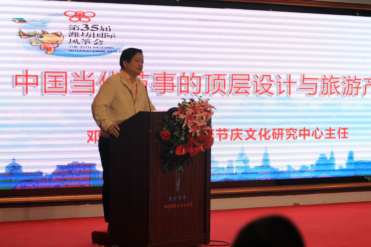 交流大会上潍坊市人大常委会副主任毛秀凤、中国会展经济研究会常务副会长储祥银致辞。北京大学政府节庆文化研究中心主任邓峰作了《中国当代节事的顶层设计与旅游产业》的主旨演讲,无锡市贸促会会长、市会展办主任徐惠娟作了《产业强市与产业会展》的主旨演讲,北京第二外国语学院经贸与会展学院院长刘大可作了《中小城市也有大作为》的主旨演讲,北京联合大学商务学院副教授张万春作了《宪法修改背景下我国会展业生态文明建设》的主旨演讲。