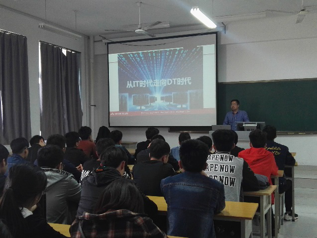 为了深化产教融合,加强校企合作班学生对专业技术的了解,4月25日下午,信息工程学院邀请山东师创软件实训学院教研经理、java高级讲师闫海玉老师举办了“IT时代-DT时代,我们将何去何从”为主题的软件专业教育讲座。信息工程学院专业教师、2016级安博软件外包班全体学生参加了讲座。