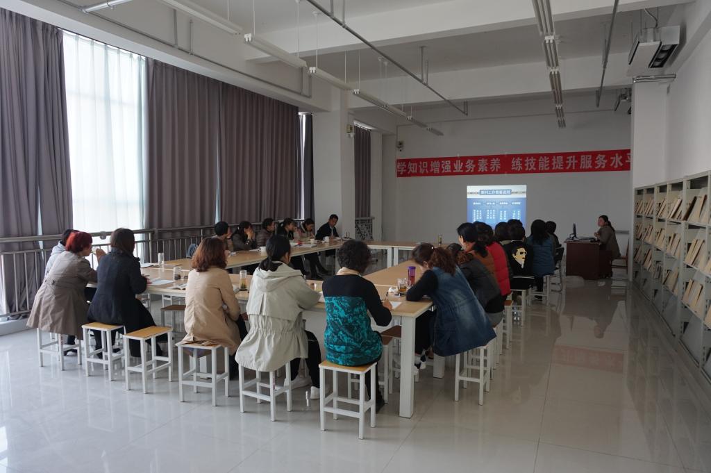 4月17日,图书馆举办第二届“学知识增强业务素养,练技能提升服务水平”服务质量提升月技术培训讲座,图书馆全体老师参加。