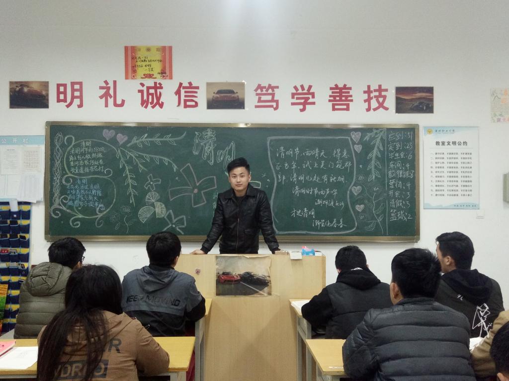 为增强同学们的安全防范意识和避险能力,保障学生安全,汽车工程学院于4月3日晚自习在惠泽二号楼B区各班开展“清明节安全返乡”主题班会对同学们进行安全教育。