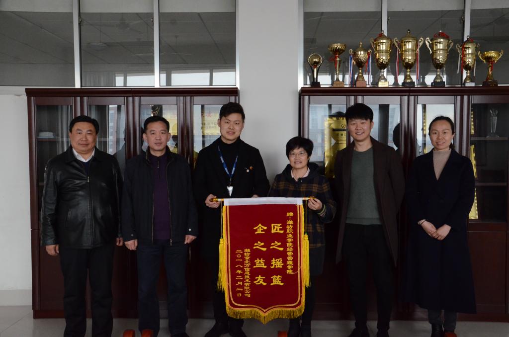 李津义介绍了山东京北方金融科技有限公司的基本情况,就本次来访目的作了说明,特别对经营管理学院在该公司进行顶岗实习的学生进行了表扬,并赠送了锦旗。经营管理学院的主要负责同志对客人的到来表示欢迎,简要介绍了学院办学情况,特别对近年来校企合作的形式及成绩等进行了介绍,同时还询问了顶岗实习学生在公司的工作、生活、发展等情况,对公司对学生的培养表示感谢。