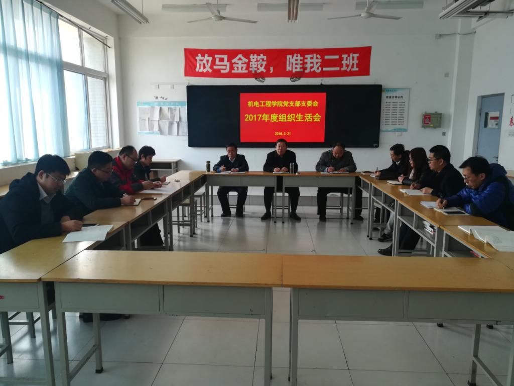 根据学院文件要求,3月21日下午,机电工程学院党支部委员会在惠泽2号楼A305召开了组织生活会。会议由机电工程学院党支部书记主持,学院领导宋桂言副书记参加,副科级以上干部、老党员代表列席。