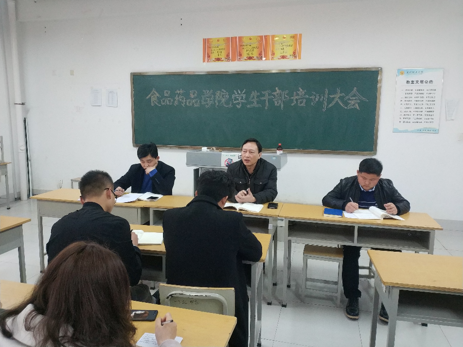 开学伊始,为让学生干部尽快进入工作状态,提高学生干部的工作能力,3月13日下午,食品药品学院在惠泽1号楼B116召开学生干部培训会。主管学生工作副院长和全体辅导员参加,大一、大二各班班委及全体学生会成员参加。