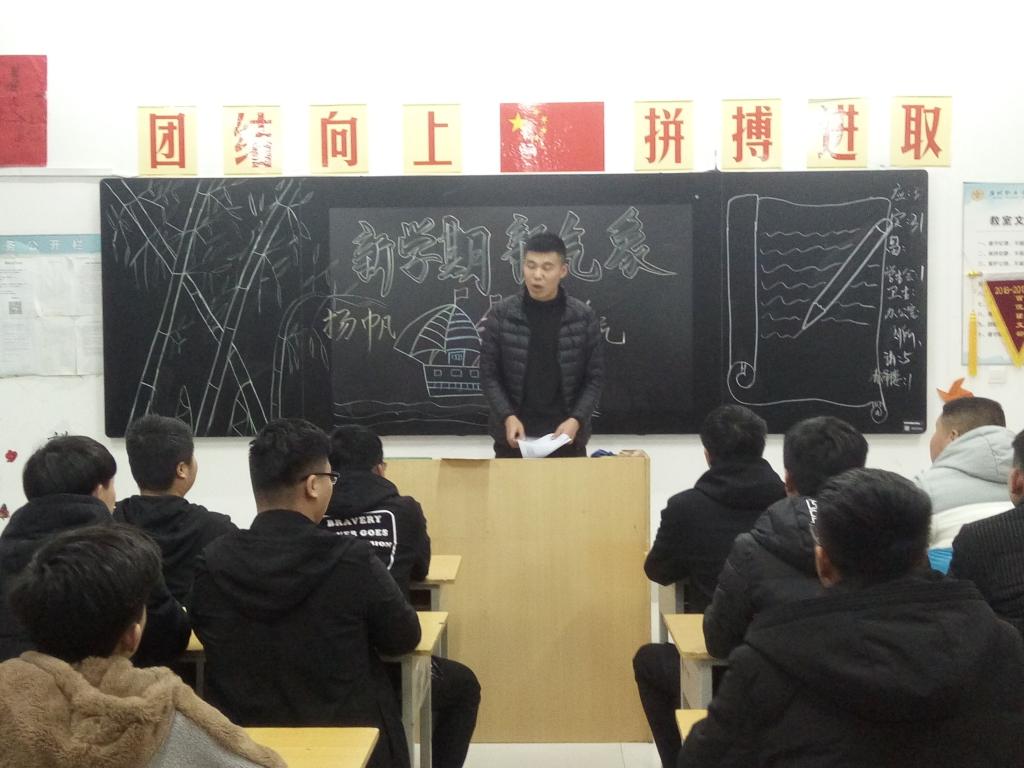 昂首迈步新学期、振奋精神新气象。为积极迎接新学期的到来,确保学生尽快收心,从“假期模式”切换到“学习模式”,调动学生的积极性以及增强集体凝聚力,3月11日、12日晚自习,汽车工程学院各班级组织了“新学期、新气象”主题教育,对学生进行了励志和安全纪律教育,引导学生总结上学期学习工作情况、交流假期学习生活和社会实践收获体会,鼓励同学们新学期要有新的打算,希望同学们在新学期取得新进步,满怀信心开启新征程。