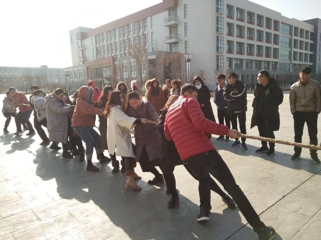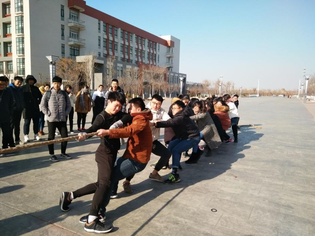 1月10日化学工程学院在图书馆门口举行了“走出宿舍,走出教室”冬季拔河比赛。