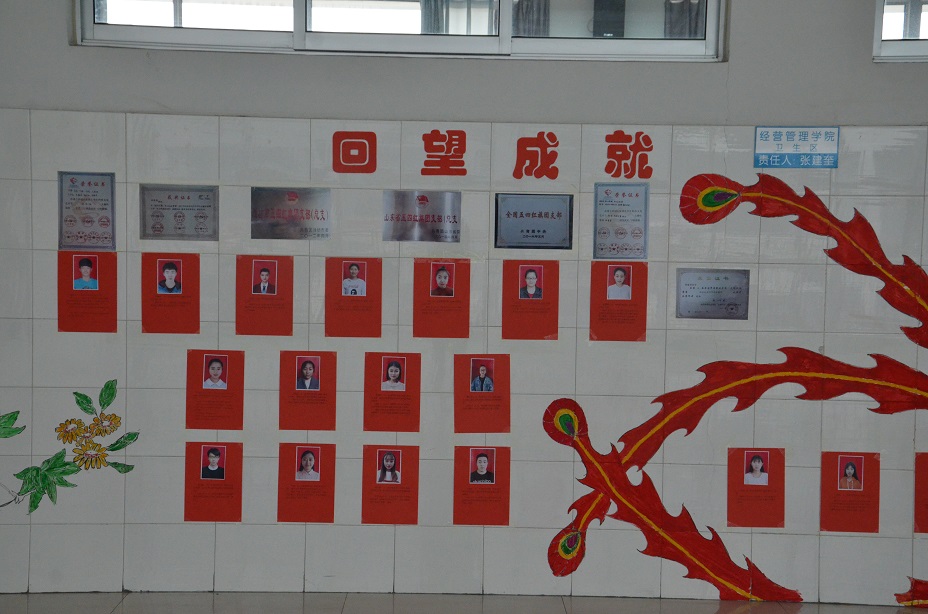 设计的文化墙不仅增长了同学们的见识,也是学院以生为本进行学生教育管理的窗口和载体。(王婷婷 供稿)