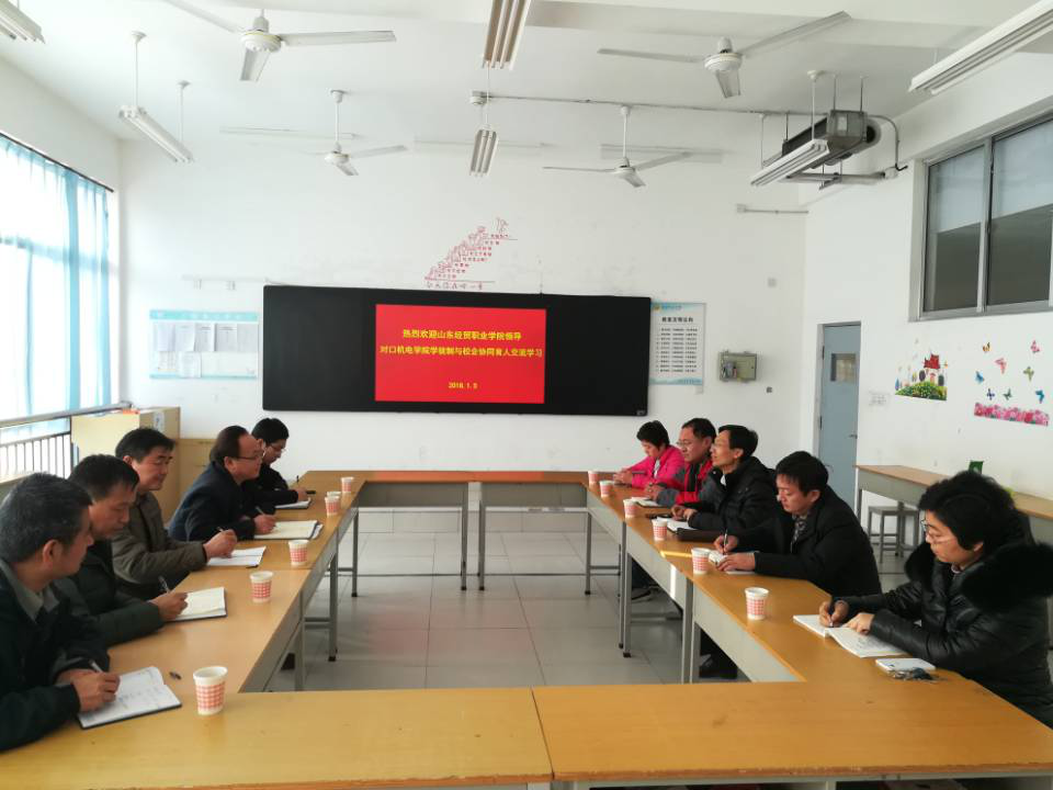 1月5日下午,山东经贸职业学院商务工程系高中玖主任一行5人来机电工程学院对口现代学徒制与校企协同育人交流学习。机电工程学院相关同志进行了热情接待。