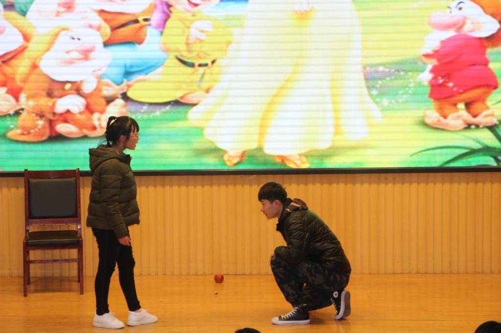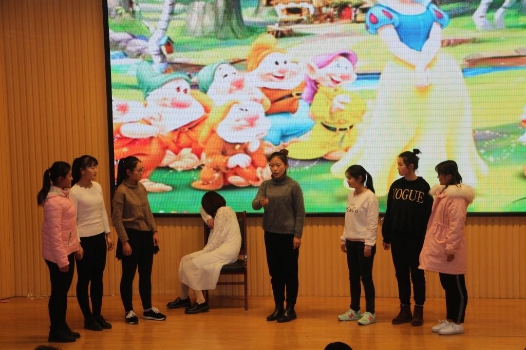 英语话剧是一项集语言与艺术于一体的综合性艺术,能够充分展现表演者的综合能力。此项活动是外语学习协会近年来举办的首次比赛,为了让更多的学生参与到这次活动中来,外语学习协会广泛发动,积极宣传,同学们都积极响应,踊跃参加,利用课余时间认真排练。经过初赛和复赛,4个剧目进入决赛角逐一、二等奖。现场,各组选手为观众带来了精彩纷呈的表演,既有西方童话,又有东方传统经典故事;既有古代情境的再现,又有积极向上的现代生活。同学们采用说、演、唱结合的方式将西方童话故事《The Snow White》中恶毒的王后、纯洁善良的白雪公主和七个小矮人淋漓尽致、恰到好处地演绎出来,既体现了选手们的专业能力、敬业精神,也体现了他们的团体协作能力,给现场的观众带来了视、听双重享受;参赛选手更是别出心裁地用英语来演绎了大家所熟悉的中国传统经典故事《ThePeacocksFly to theSoutheast》,惟妙惟肖的表演,感人至深的故事情节,将现场的观众带入了情境中,更是将现场的气氛推向了高潮。比赛现场,评委老师严格按照评分标准进行打分,评选出一等奖一名,二等奖三名。