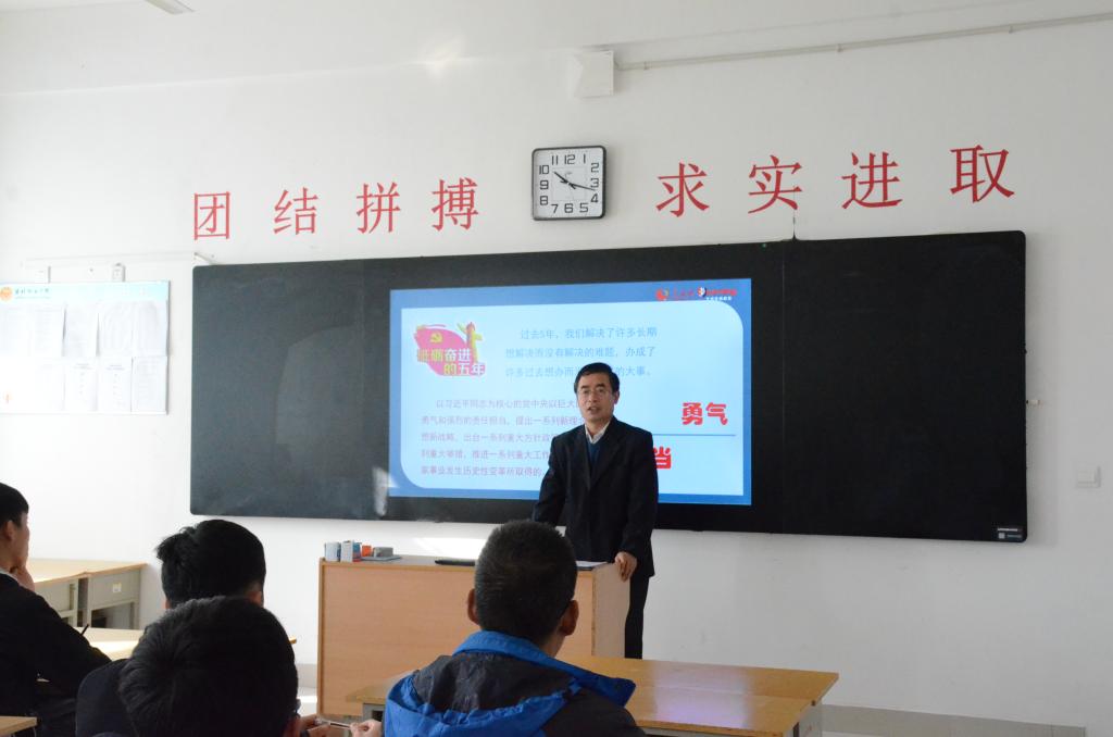该活动是宣传贯彻学习党的十九大精神的重要活动组成部分,各位党员在深刻领会习近平新时代中国特色社会主义思想基础上,从“十九大报告的时代背景和近五年取得丰硕成果”、“提出的理论创新”、“提出的战略体系”、“全面从严治党的总要求”四个方面和 “六个聚焦”介绍了学习十九大精神的政治意义、历史意义、理论意义、实践意义。宣讲会同学们认真听、仔细记,深刻两会党的十九大精神的内涵。