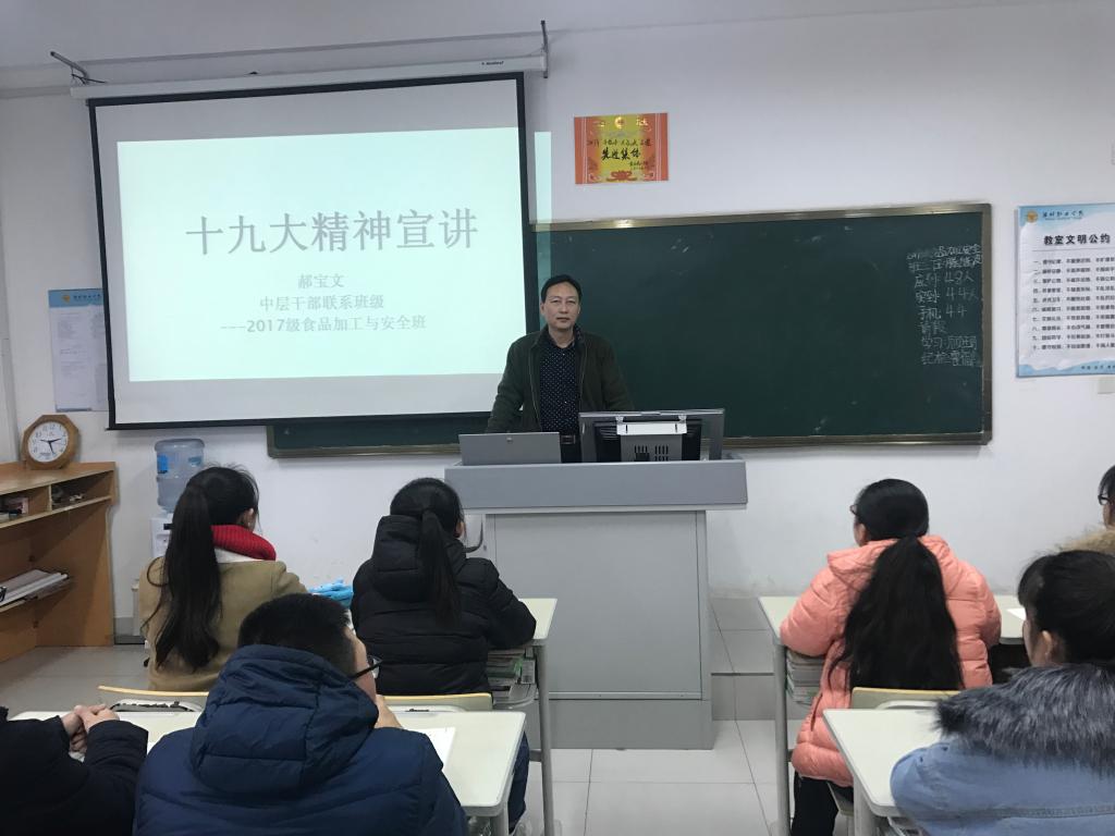 为了把学习和宣传十九大精神推向深入,食品药品学院成立由学院院长、党支部书记及教学和学生管理分管院长组成的“食品药品学院学习贯彻党的十九大精神宣讲团”,学院领导带头学、带头讲,面向学生进行宣讲交流,让党的十九大精神浸润学子心。