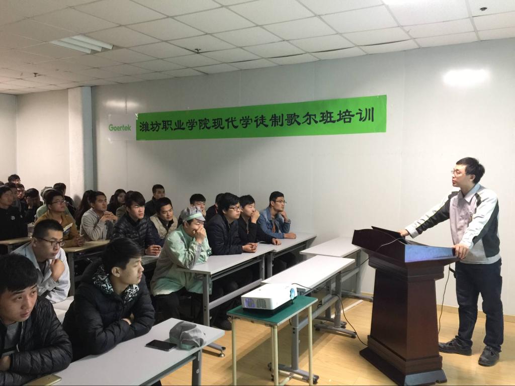现代学徒制试点项目是必赢以省级现代学徒制试点为契机,与歌尔股份有限公司签订的战略性合作项目。今年9月18日,2016级数控技术专业44名学生在歌尔股份有限公司的培训中心举行了隆重的拜师仪式,并被媒体“直播潍坊栏目”全程报道。截止发稿目前,44名学徒均在歌尔PMF-PPM事业部注塑中心重要岗位任职,学习工作情况良好,得到企业领导一致好评。