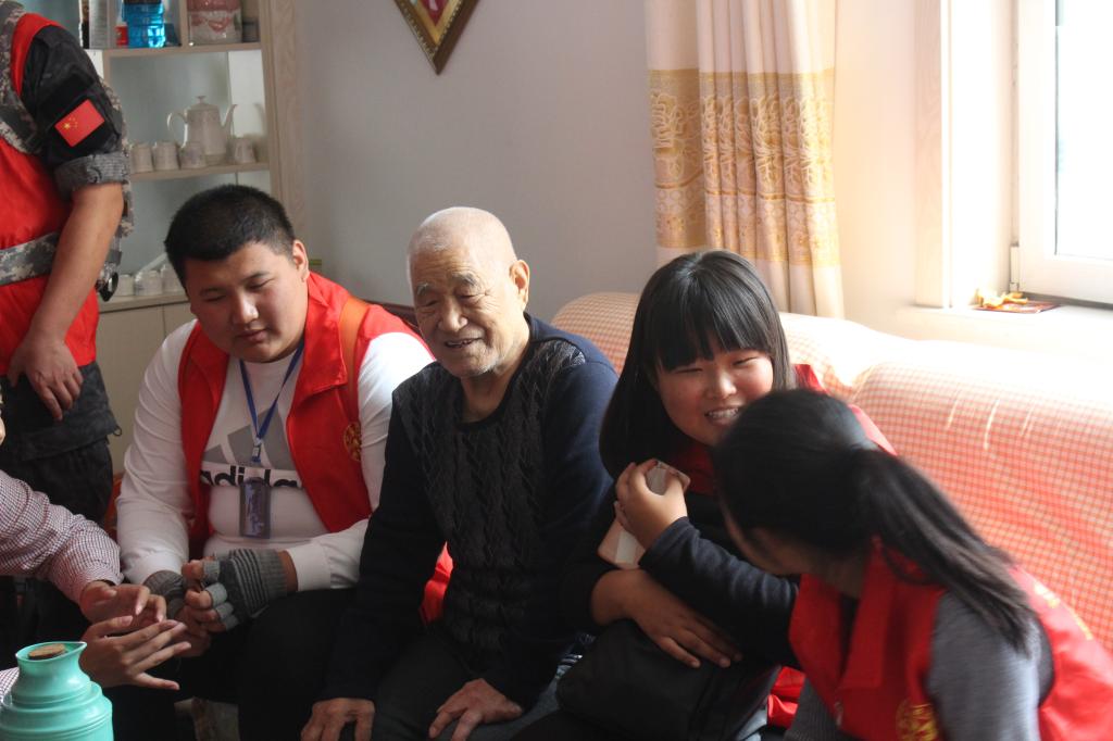 在活动中,志愿者们本着志愿者们到各位老人家里,细心地跟老人交谈、给他们揉肩,询问他们的健康状况并提醒老人注意保暖,并给十位贫困老人送上了米、面、油、鸡蛋等多种生活用品,把温暖送到老人手中。