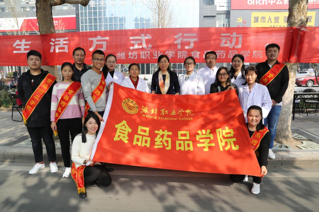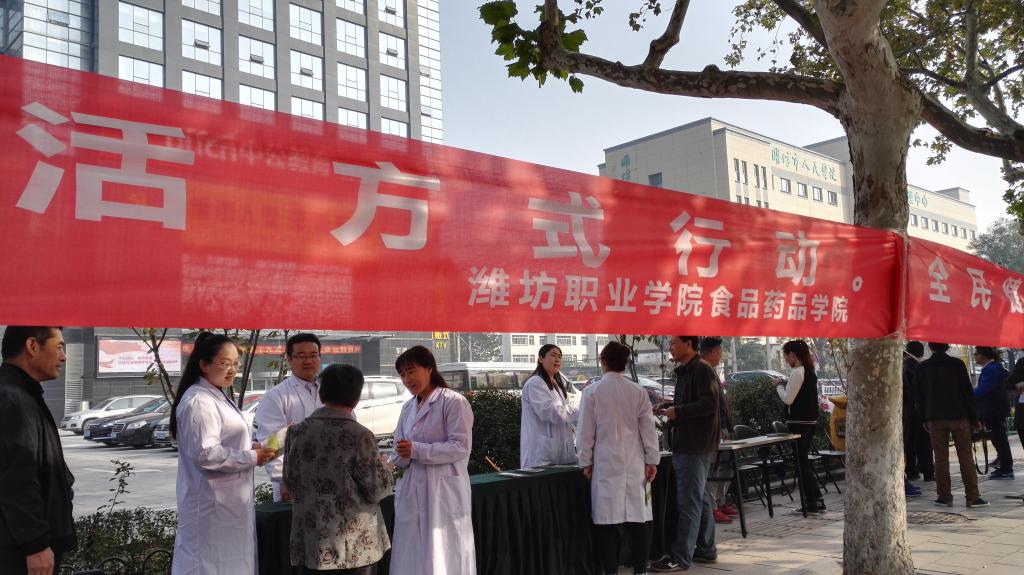 10月28日上午,食品药品学院会同潍坊市政协无党派、社会福利和社会保障组,东庄社区党委在奎文区东盛广场举办“全民健康生活方式行动”宣传活动。