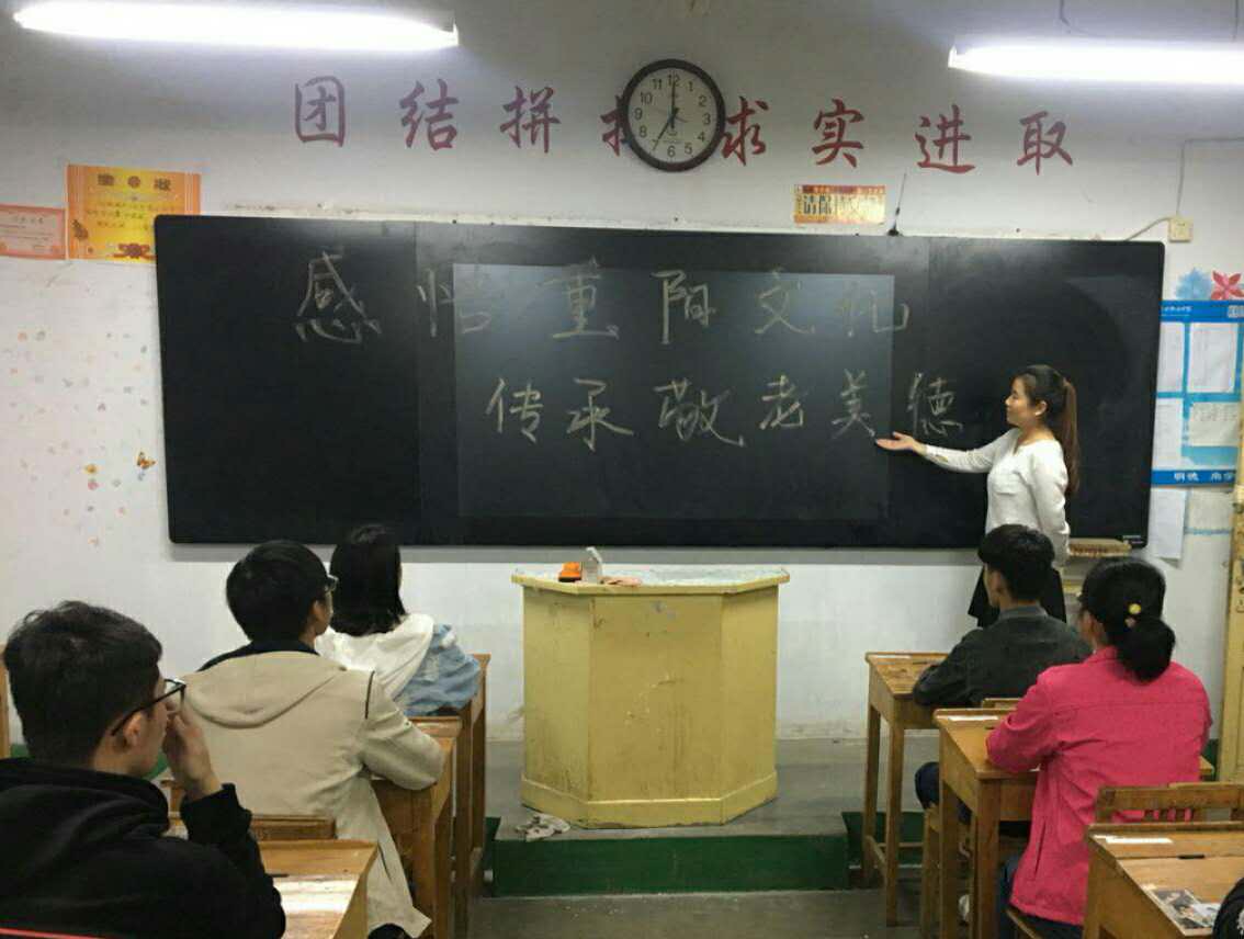在“感悟重阳文化,传承敬老美德”主题班会活动中,国际商务学院各班级主要以演讲和讨论的形式开展。同学们把搜集来的关于十九大的内容、有关重阳节的诗句、尊老敬老的故事以及各地过重阳的习俗,与同学们进行分享。通过此次活动,使同学们对十九大精神和重阳节的传统文化知识有了更深入的了解,增强了同学们的社会责任感和历史使命感。对今后的学习生活有了更明确的指导作用,同时也为今后各项工作的开展打下了坚实的基础。