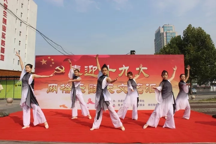 喜迎十九大,坚定信念梦圆中国,10月13日上午,大虞街道陈家社区“喜迎十九大网格乐翻天”文艺汇演在丹桂里金街广场举行。为此,该院青年团员们积极响应社区号召,精心彩排出一支激情澎湃、炫舞飞扬的现代舞《飞》,登上舞台,献礼十九大。