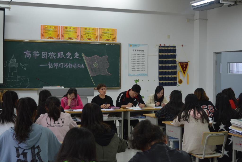 10月12日,经营管理学院开展“高举团旗跟党走”主题活动启动仪式。该院团总支老师、各班级团干部参加仪式。