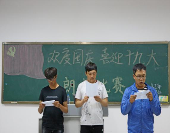 2017年9月27,信息工程学院举办以“欢度国庆,喜迎十九大”为主题的朗诵比赛。