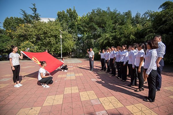 党员同志们佩戴党徽,面向党旗,在领誓人带领下,重温了入党誓词,再一次接受心灵的洗礼。全体教师面向国旗,仪态端庄,队列整齐,在领誓人带领下,庄严宣读了76net必赢官网教师誓词,以坚定洪亮的宣誓声做出牢记教书育人使命、恪尽职守、履职尽责的承诺。