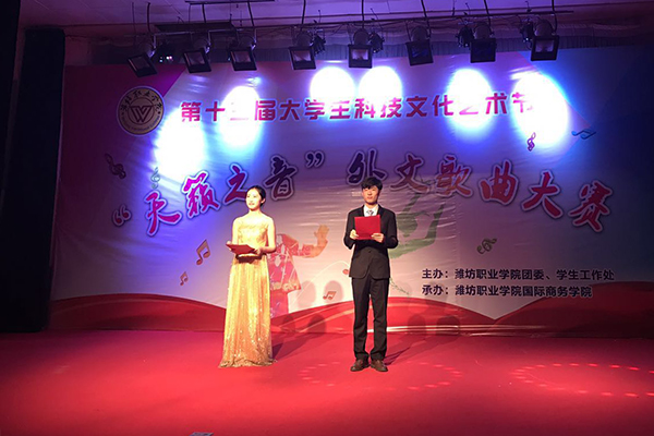 6月21日下午,国际商务学院第十三届“天籁之音”外文歌曲大赛在奎文校区报告厅举行。本次活动是第十三届科技文化艺术节活动之一。