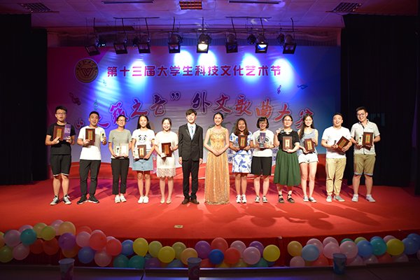 本次大赛历时一个月,经过初赛、复赛的激烈角逐,有10组选手入围最终的决赛。决赛在火热劲爆的开场舞中拉开帷幕。选手们选取的歌曲有英、韩、日等多种语种,演绎着不同风格的外文歌曲。比赛过程中欢快的歌曲、激情的伴舞将现场的气氛一次又一次推向高潮。《Updown Funk》、《faded》、《Take me to your heard》等一首首经典外文歌曲的演唱博得了现场观众的阵阵喝彩和掌声。最后,来自2016级商务管理班的付宇和2016级商务英语1班的孙路平以高水平的演唱、活泼大方的台风、精彩的互动征服了评委和观众,拔得头筹。