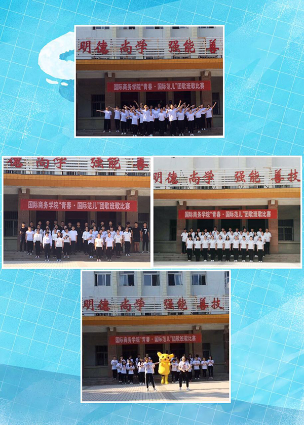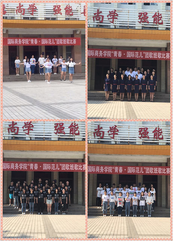 为提升班级凝聚力,展现学生青春风采,提高学生综合素质,构建和谐校园,6月1日下午,国际商务学院举行第三届“青春•国际范儿”团歌班歌比赛。