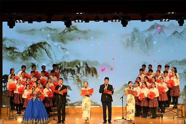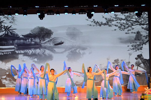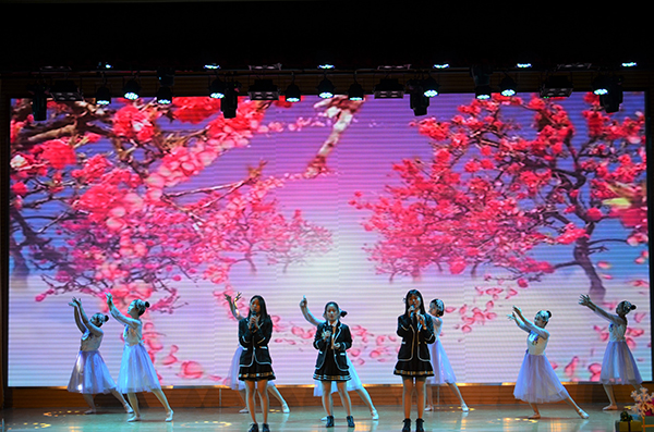 合唱《共筑中国梦》将对祖国的热爱和祝福化作动人的乐章,拉开了晚会的序幕,将现场气氛迅速点燃。配乐诗朗诵《沁园春·雪》、《长征》语调铿锵有力,使大家领略了祖国的壮美河山和长征精神;歌曲串烧《最初的梦想》、《奔跑》、《我的未来不是梦》节奏明快,唱出了青年人对梦想的憧憬、努力和追求;由发条橙乐队带来的《模范情书》和吉他弹唱《斑马斑马》让大家感受到了时尚音乐的激情与魅力;舞蹈《恰恰》、《青花瓷》气氛或清新或火热,舞姿或动感或炫酷,将青春活力展现得淋漓尽致;小品《报恩》、《以貌取人》别出心裁,接地气地传递着爱心正能量;情景剧《感恩老师》用优美的歌声、动情的演绎表达对老师的深情感恩和真诚祝福;由老师们带来的《秀·中国风》则彰显了老师们的多才多艺,为晚会增添了又一道靓丽的风采。嘹亮的歌声,优美的舞姿,深情的朗诵将晚会一次次推向高潮。
