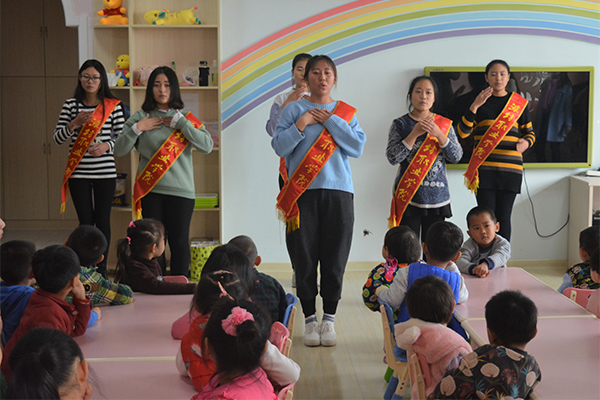 11月22日,经营管理社会实践团走进滨海区京师幼儿园开展“延伸爱心舞台,携手温情世界”活动。