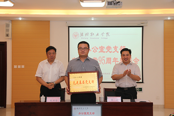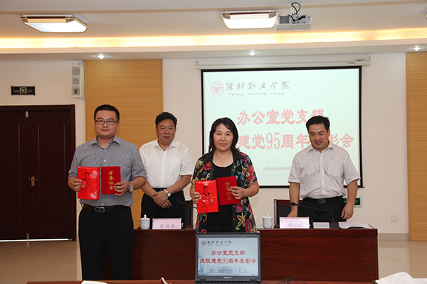 6月29日下午,学院办公室党支部召开庆祝建党95周年表彰会。学院党委书记张洪全参加会议并作讲话。办公室全体人员参加。