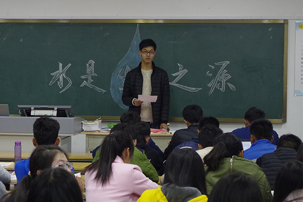 晚自习时间,有的班级通过主题班会的形式学习确定“世界水日”和“中国水周”的起因、背景、目的、宗旨和历届主题意义;有的班级通过知识竞赛、辩论赛的形式引导同学们认识爱护水资源的重要性,激发大家节水、护水的共鸣;有的班级组织学生观看了《水脉》等纪录片,以鲜活详实的事例告诫同学们一定要惜水、节水、爱水、护水。