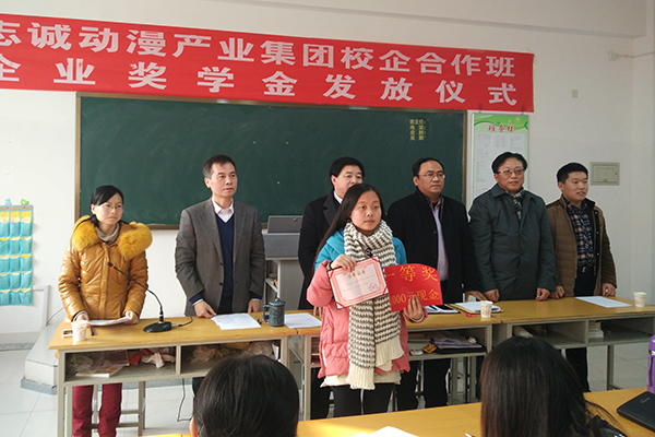 1月14日下午,志诚动漫产业集团校企合作班企业奖学金发放仪式在滨海校区举行。招生就业处主要负责人、师范/文化创意学院主要负责人、动漫教研室相关教师和志诚动漫产业集团的领导和企业教师等出席仪式。