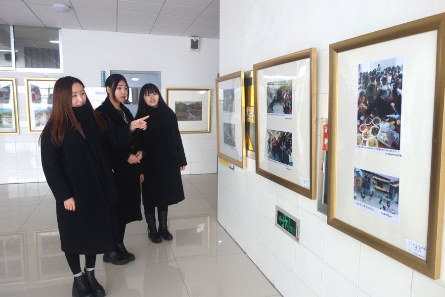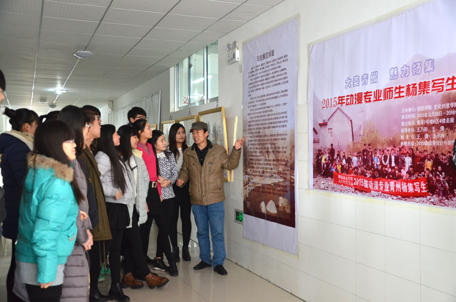 12月28日,在滨海校区惠泽教学楼B区一号四楼走廊,师范/文化创意学院2015级动漫设计与制作专业百名师生青州杨集美术写生作品展览隆重开展,吸引了广大师生纷纷驻足参观,赢得了一片叫好和点赞。