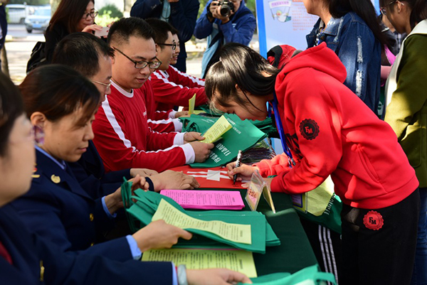 11月2日上午,中专部联合潍坊市工商局、奎文区市场监管局在奎文校区举办“共同防范传销,共建和谐社会”主题宣传教育活动。
