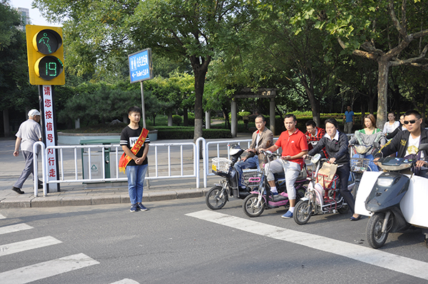 为响应市文明办的号召,巩固创建全国文明城市活动成果,展示全国文明城市形象,9月8日上午,团委学生工作处选派国际商务学院的4名志愿者在东风街与虞河路交叉口进行文明交通引导志愿服务活动。志愿者们配合交警宣传文明交通常识,对路口非机动车闯红灯、越线等候红灯和行人闯红灯等不文明交通行为进行文明劝导和协助纠正。此次志愿服务活动进一步深化了“奉献、友爱、互助、进步”的志愿者精神,扩大了必赢青年志愿者在社会上的影响。(郭敏供稿)