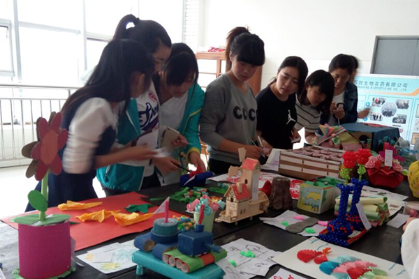 活动过程中,同学们踊跃报名参赛,各展所能,精心制作了一件件别具匠心的手工艺品。各种纸张、废纸盒、无污染材料在同学们的精心打造下,成了一件件令人赞叹不绝的作品。赏心悦目的花朵、惟妙惟肖的小动物令人眼前一亮,各种人物的剪纸更让人心悦诚服。另外,还有一座同学们用瓦楞纸建造的小房子,用手工串珠穿起来的玫瑰花等等,更加让我们感叹同学们的心灵手巧。通过同学们的作品,我们感受到同学们的创作热情,看到一个个矿泉水瓶、易拉罐,在同学们的精心制作下,变废为美,化腐朽为神奇,成为一件件美丽的作品时,老师们感到真的很欣慰,和同学们一起体验到成功的喜悦。展出的手工艺品吸引了众多师生驻足观看,也让参展的制作者们感到无比的骄傲和自豪,进一步激发了大学生们创新创造的兴趣。