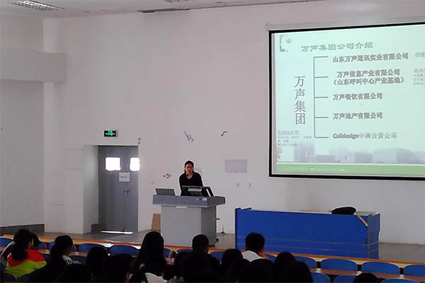 活动由山东万声通讯实业有限公司工作人员宣讲,采用PPT多媒体展示、案例分析、场景模拟等方式展示了公司的现状和未来前景,并重点宣传了企业文化。企业文化是企业的灵魂,企业文化对企业员工的道德观念、价值取向、行为方式等有着重要的影响。宣讲内容包括员工篇、团队篇、客户篇、环境篇、创新篇和资源篇等。通过万声通讯实业有限公司“员工篇”的介绍,让学生更注重提升自己的能力和素质,并勇于展现自己,善于抓住机会;“团队篇”的介绍,让学生加深对团队精神的理解,知晓团队合作的重要性。其他内容的介绍也让学生深受启发。
