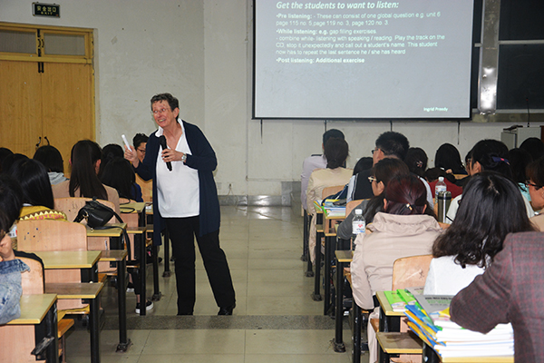 4月23日,国际商务学院特别邀请德国职业英语教育专家Ingrid Preedy女士,为该院“成长讲坛”作职业教育主题讲座。该院全体师生参加了讲座。