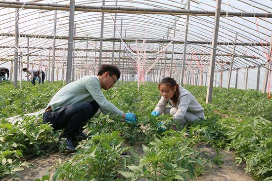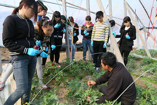 近日,受潍坊市恒丰农产品专业合作社邀请,农业工程学院2014级园艺技术专业全体同学在老师带领下,来到合作社基地的番茄大棚里参加专业综合实训,学习番茄保花保果与植株调整技术。
