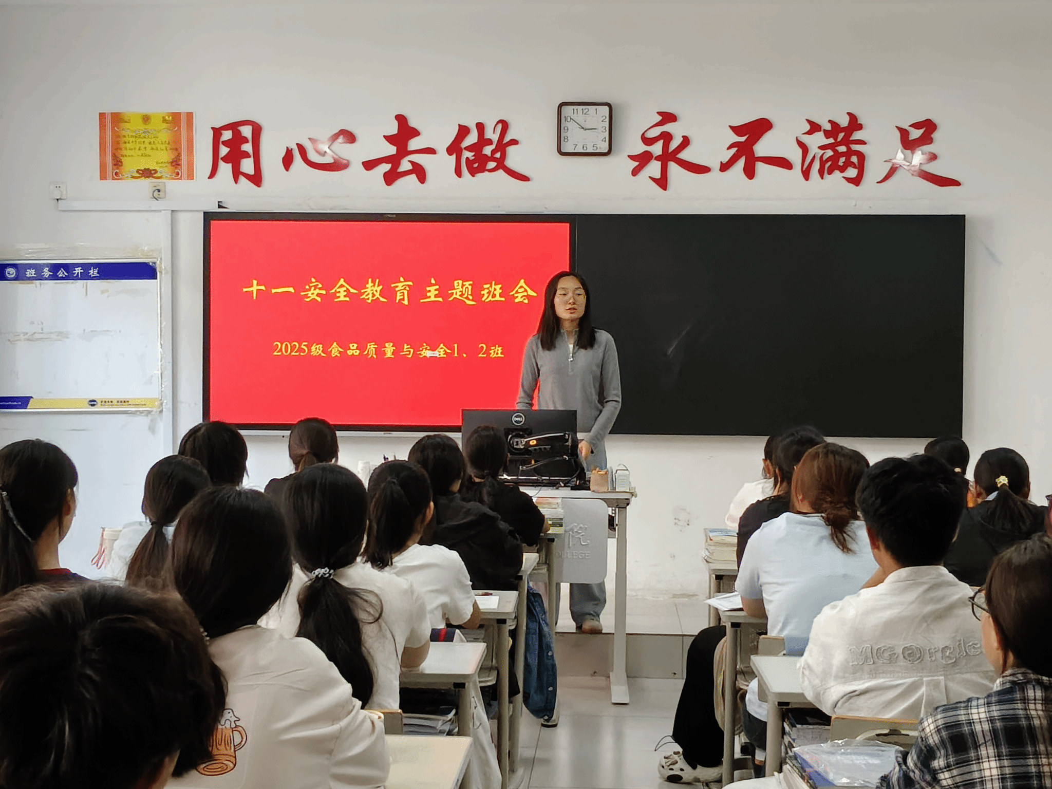 国庆长假将至,为增强全体学生的安全防范意识,食品药品学院各班级于9月24日举办“筑牢安全防线,欢度平安国庆”国庆假期安全教育主题班会。