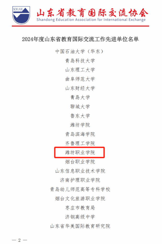学院荣获“2024年度山东省教育国际交流工作先进单位”称号