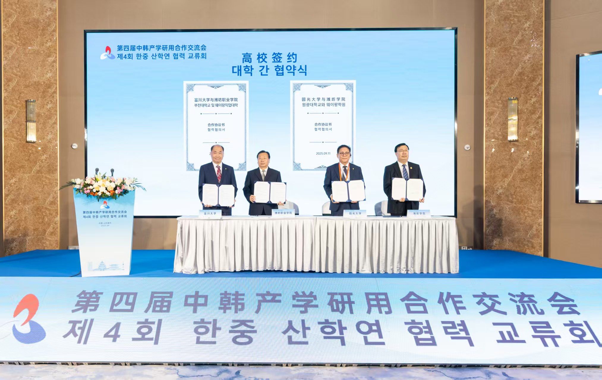 9月11日下午,第四届中韩产学研用合作交流会在潍理工酒店举行,必赢党委副书记贺志强代表学院与韩国富川大学签署合作协议。12日上午,韩国富川大学韩政锡校长一行9人来必赢访问,学院党委书记王浩、党委副书记贺志强在滨海校区会见了客人,国际交流与合作处负责人及相关同志共同参加会议。 贺志强主持会议。